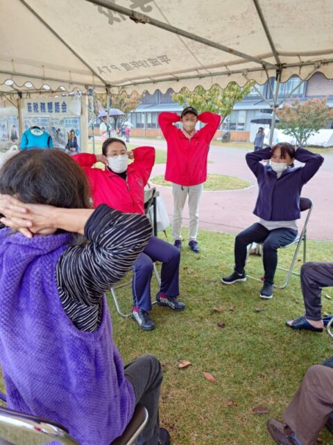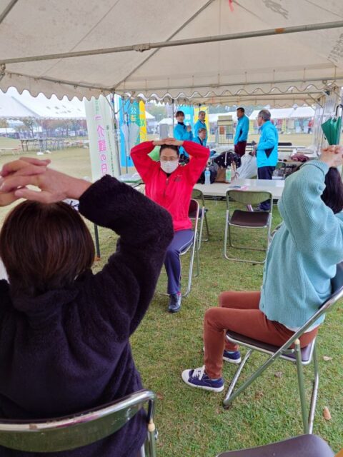 令和7年11月9日(日)、萩市で萩ふるさと祭りが開催され、中央公園のお祭り広場にて、北部ブロックは、介護の日のイベントとして、介護予防リハビリ体操をしました。前日の天気から一転、雨模様の中、開催し、42名の方がリハビリ体操に参加してくださいました。ありがとうございました。新型コロナウイルス感染症の感染拡大のため、この数年は地域貢献として、海岸清掃のお手伝いをしてきましたが、今年は久々にお祭り広場で介護予防リハビリ体操をしました。あいにくの天気でしたが、声かけに快く参加してくださいました皆様に感謝いたします。ありがとうございました。