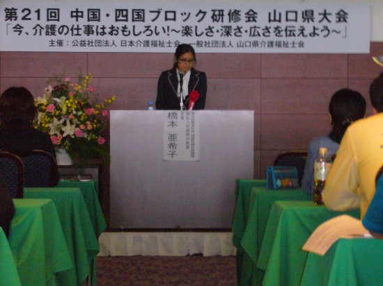 去る9月26日(金)27日(土)の両日、『今、介護の仕事はおもしろい!~楽しさ・深さ・広さを伝えよう~』をテーマに第21回中国・四国ブロック研修会を山口県介護福祉士会が担当し、下関市のグランドホテルを会場に中国・四国9県から300余名の会員の参加を得て実施いたしました。